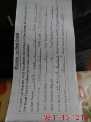 | Attendance Register | Head Teacher | MEA with School | Visit Proof |