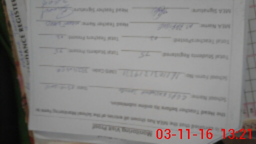 | Name: NI**** SA**** Designation: (School Headmaster's/Headmistress's) PST Phone/Cell Number: 03**** |