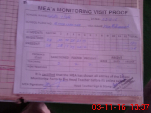 | Attendance Register | Head Teacher | MEA with School | Visit Proof |