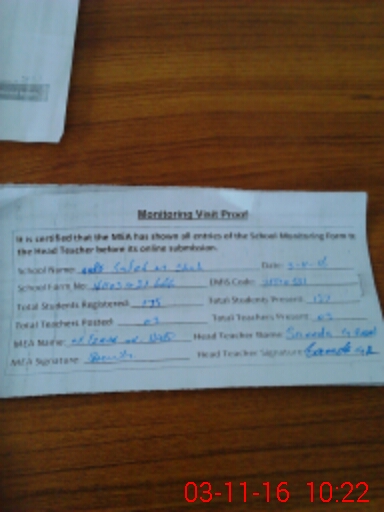 | Attendance Register | Head Teacher | MEA with School | Visit Proof |