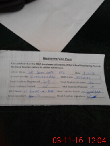 | Attendance Register | Head Teacher | MEA with School | Visit Proof |