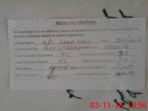 | EMIS Code: 35430514 | Name of School: GPS LAMB WALI JADEED | |||