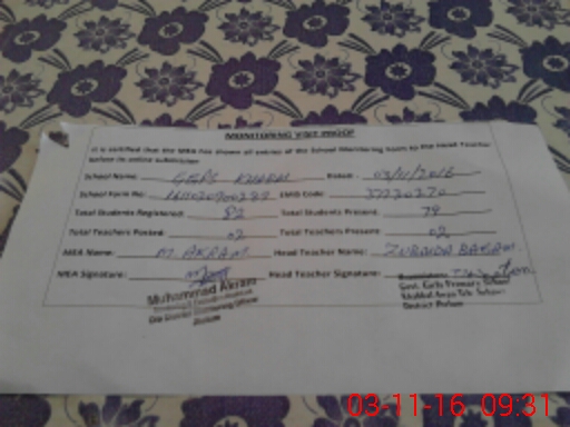 | Certified that this School was Inspected by the Undersigned MEA/DMO Today and the Information Stated Above is as Per Record. | |||||