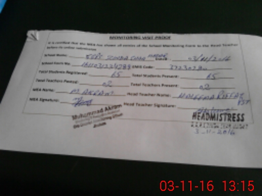 | Attendance Register | Head Teacher | MEA with School | Visit Proof |