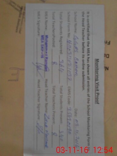 | Certified that this School was Inspected by the Undersigned MEA/DMO Today and the Information Stated Above is as Per Record. | |||||