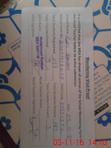 | Certified that this School was Inspected by the Undersigned MEA/DMO Today and the Information Stated Above is as Per Record. | |||||