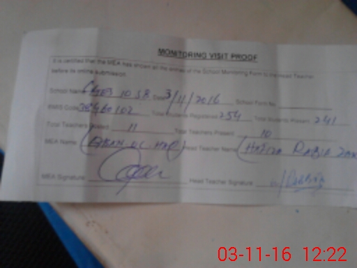 | Certified that this School was Inspected by the Undersigned MEA/DMO Today and the Information Stated Above is as Per Record. | |||||