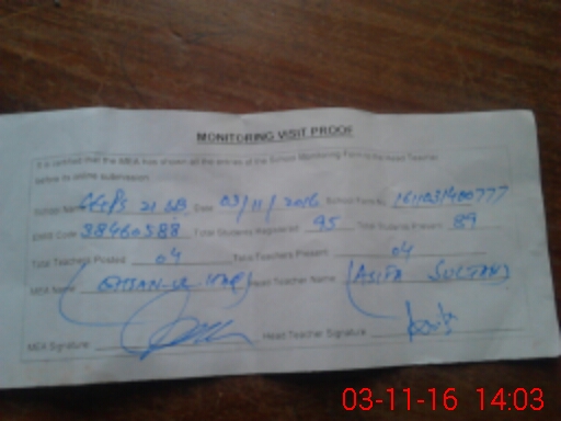 | Name: AS**** SU**** Designation: (School Headmaster's/Headmistress's) PST Phone/Cell Number: 03**** |