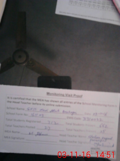 | Certified that this School was Inspected by the Undersigned MEA/DMO Today and the Information Stated Above is as Per Record. | |||||