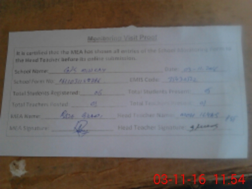 | Attendance Register | Head Teacher | MEA with School | Visit Proof |