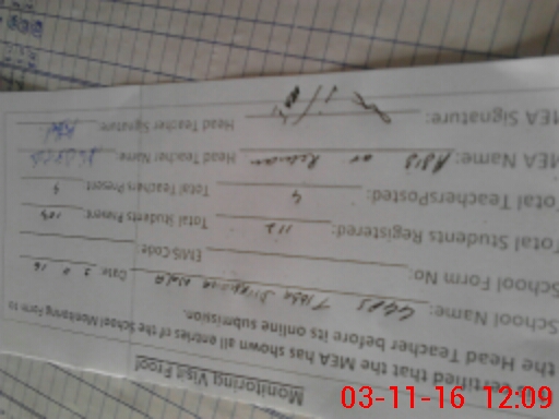 | Attendance Register | Head Teacher | MEA with School | Visit Proof |