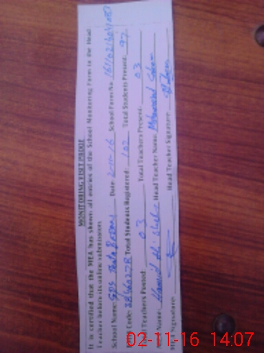 | Attendance Register | Head Teacher | MEA with School | Visit Proof |