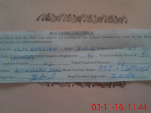 | Certified that this School was Inspected by the Undersigned MEA/DMO Today and the Information Stated Above is as Per Record. | |||||