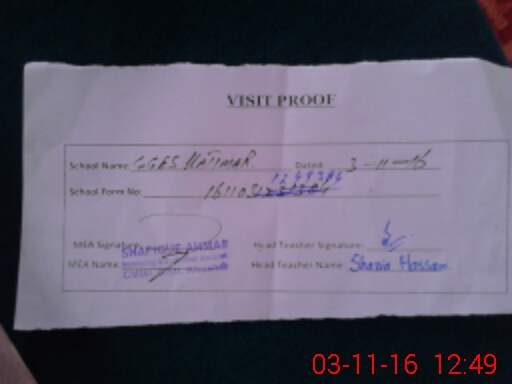 | Attendance Register | Head Teacher | MEA with School | Visit Proof |
