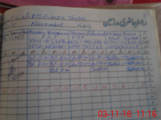 | District: RAHIMYAR KHAN | Tehsil: LIAQATPUR | Markaz: FEROZA - FEMALE | Level: Primary | |
