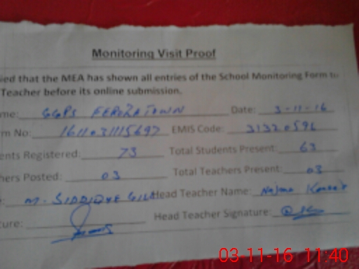 | EMIS Code: 31320596 | Name of School: GGPS FEROZA TOWN | |||
