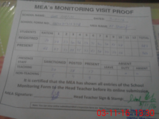 | Certified that this School was Inspected by the Undersigned MEA/DMO Today and the Information Stated Above is as Per Record. | |||||