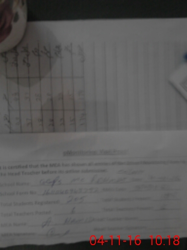 | Attendance Register | Head Teacher | MEA with School | Visit Proof |