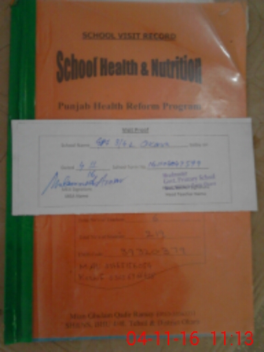 | School Visited by School Health & Nutrition Supervisor (No. of Visits) | 3 | Name1: | Main Ghulam Qadir | Name2: | |