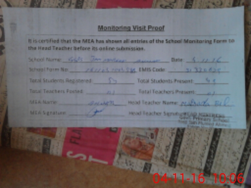 | Attendance Register | Head Teacher | MEA with School | Visit Proof |