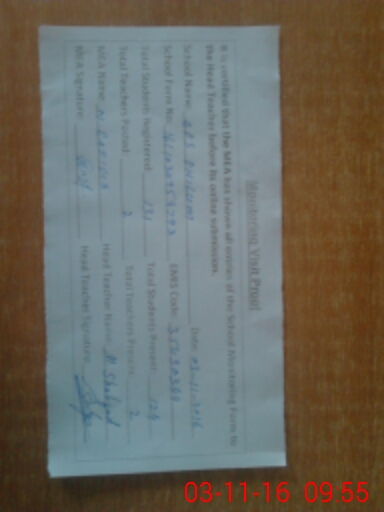 | Certified that this School was Inspected by the Undersigned MEA/DMO Today and the Information Stated Above is as Per Record. | |||||