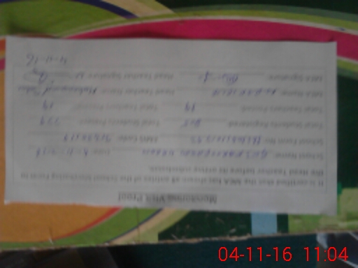 | Name: Mu**** Al**** Designation: (School Headmaster's/Headmistress's) S.S.T.( General ) Phone/Cell Number: 03**** |