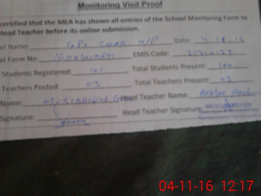 | EMIS Code: 31310139 | Name of School: GPS CHAK NO 4/P | |||