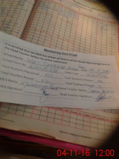 | Attendance Register | Head Teacher | MEA with School | Visit Proof |