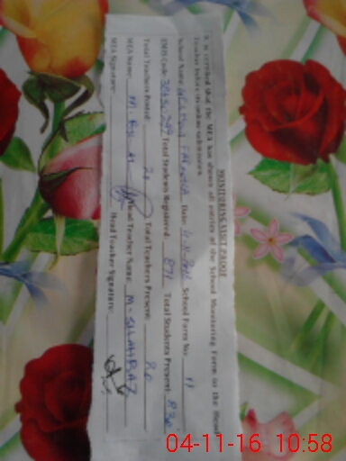| Attendance Register | Head Teacher | MEA with School | Visit Proof |