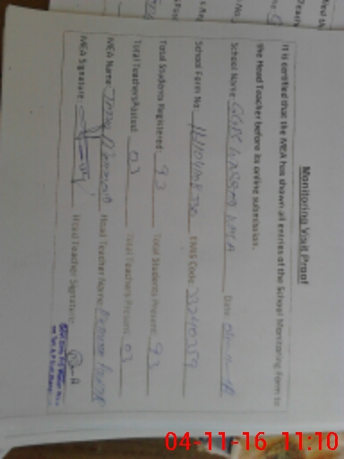 | Attendance Register | Head Teacher | MEA with School | Visit Proof |