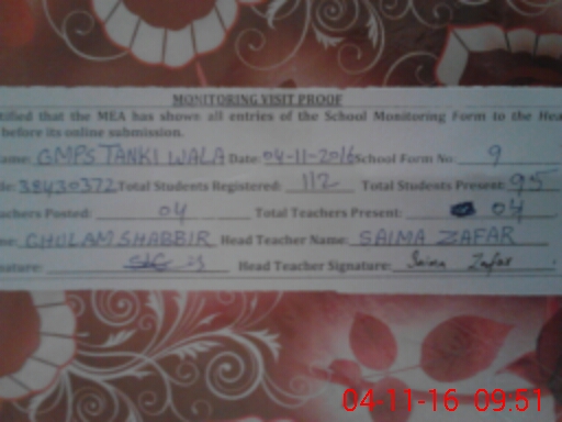 | EMIS Code: 38430372 | Name of School: GMPS TANKI WALA | |||