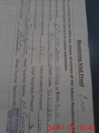 | Attendance Register | Head Teacher | MEA with School | Visit Proof |