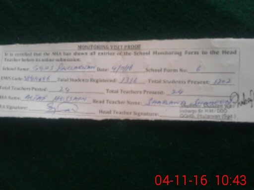 | Attendance Register | Head Teacher | MEA with School | Visit Proof |