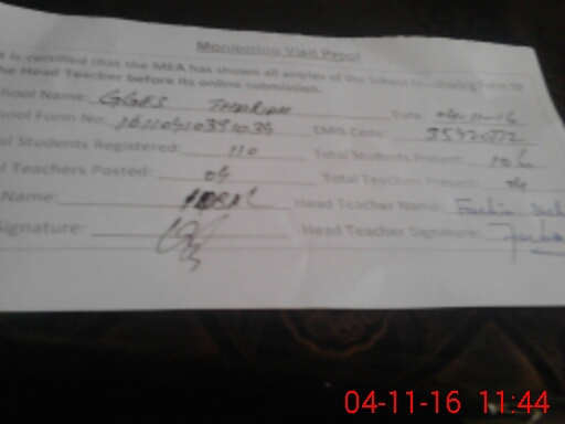 | Attendance Register | Head Teacher | MEA with School | Visit Proof |