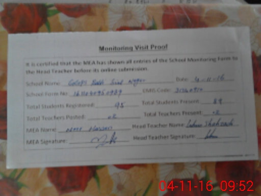 | Certified that this School was Inspected by the Undersigned MEA/DMO Today and the Information Stated Above is as Per Record. | |||||
