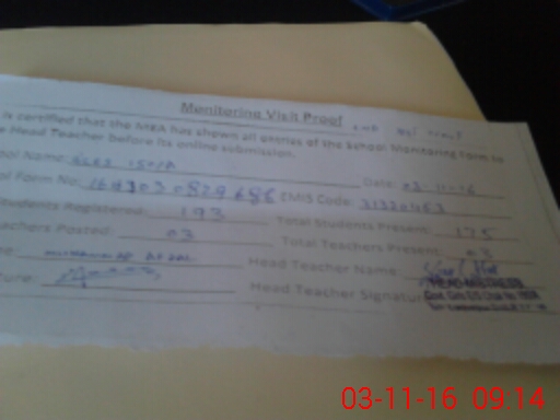 | Attendance Register | Head Teacher | MEA with School | Visit Proof |