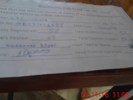 | Attendance Register | Head Teacher | MEA with School | Visit Proof |