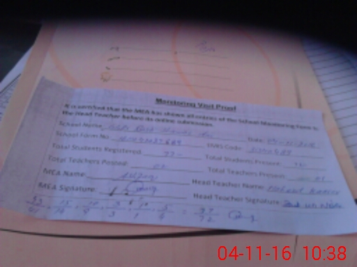 | Attendance Register | Head Teacher | MEA with School | Visit Proof |