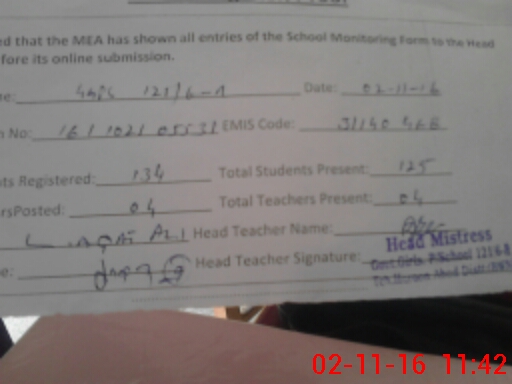 | Attendance Register | Head Teacher | MEA with School | Visit Proof |