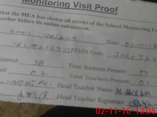 | Attendance Register | Head Teacher | MEA with School | Visit Proof |
