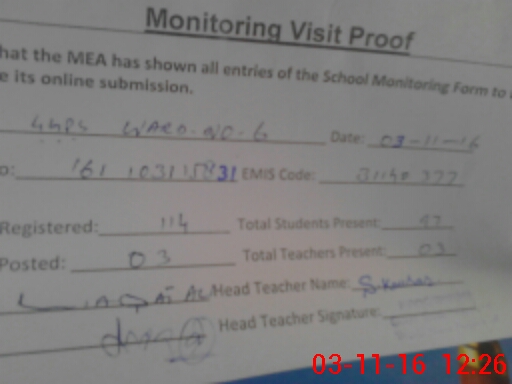 | Attendance Register | Head Teacher | MEA with School | Visit Proof |