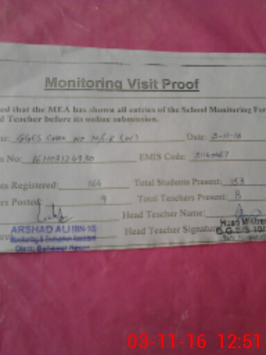 | EMIS Code: 31140067 | Name of School: GGES CHAK NO 10/1-R W | |||