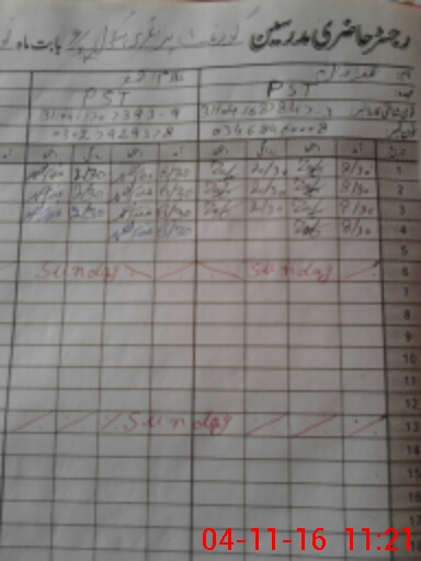 | CNIC | Full Name | Designation | R/C | Absence During Last Calender Month |