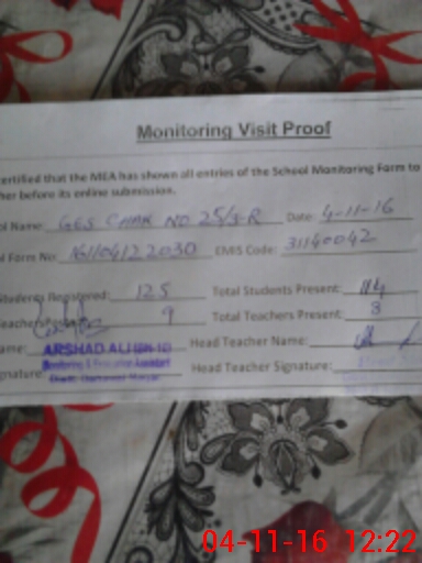 | EMIS Code: 31140042 | Name of School: GES CHAK NO. 25/3-R | |||
