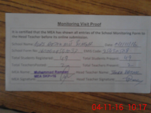 | Certified that this School was Inspected by the Undersigned MEA/DMO Today and the Information Stated Above is as Per Record. | |||||