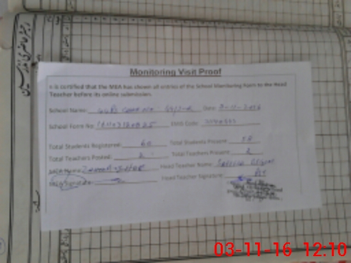 | Attendance Register | Head Teacher | MEA with School | Visit Proof |