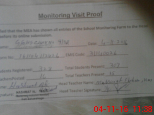 | EMIS Code: 31140026 | Name of School: GGHS CHAK NO 9/3-R | |||