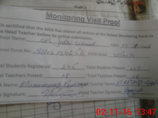 | Certified that this School was Inspected by the Undersigned MEA/DMO Today and the Information Stated Above is as Per Record. | |||||