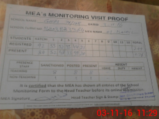 | Certified that this School was Inspected by the Undersigned MEA/DMO Today and the Information Stated Above is as Per Record. | |||||