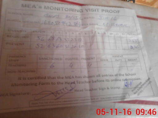 | Attendance Register | Head Teacher | MEA with School | Visit Proof |